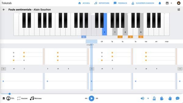 Tokatab met en avant la pratique du piano-voix, avec la mélodie et les paroles synchronisées avec le morceau et des arrangements orientés vers l'accompagnement. Si vous êtes chanteur ou professeur de chant, c'est l'outil idéal pour s'initier à l'accompagnement.